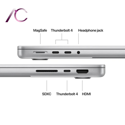 در هر دو مدل مک‌بوک پرو چندین پورت وجود دارد، از جمله یک اسلات کارت SDXC، یک درگاه HDMI 2.1،